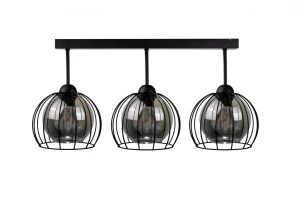 Centralnym elementem lampy są trzy druciane klosze, które skrywają kolejny dymiony szklany klosz, tworząc subtelne światło o niepowtarzalnym blasku. To nie tylko lampa sufitowa, to również unikalny element dekoracyjny, który stanie się centrum uwagi w każdym pomieszczeniu.