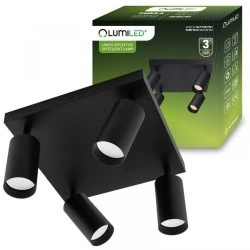 Lampa sufitowa, plafon o nowoczesnym i minimalistycznym designie stanowi doskonałe rozwiązanie do każdego rodzaju wnętrza. Reflektor w czarnym kolorze, został wyposażony w cztery gniazda na żarówkę GU10 co pozwala na wykorzystanie zarówno tradycyjnych, jak i energooszczędnych żarówek LED. Regulowany kąt padania światła umożliwia precyzyjne oświetlenie wybranych punktów w pomieszczeniu. Prosta konstrukcja oraz subtelne, matowe wykończenie sprawiają, że lampa świetnie współgra z aranżacjami w stylu nowoczesnym, skandynawskim lub loftowym. Doskonale nadaje się do akcentowania obrazów, półek czy dekoracyjnych elementów, a także może pełnić funkcję większego systemu oświetleniowego.