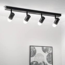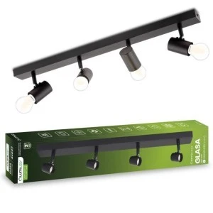 Lampa sufitowa w kształcie tuby serii GLASA marki Lumiled o nowoczesnym, minimalistycznym designie to idealny wybór do każdego wnętrza. Zaprezentowany model w czarnym kolorze został wyposażony w cztery gniazda na żarówkę E27, co pozwala na zastosowanie energooszczędnych żarówek LED, jak i klasycznych. Regulowany kąt padania światła pozwala na dokładne doświetlenie wybranych obszarów w pomieszczeniu. Prosty wygląd i delikatne, matowe wykończenie sprawiają, że lampa doskonale komponuje się z wnętrzami w stylu nowoczesnym, skandynawskim lub loftowym. Świetnie sprawdzi się jako oświetlenie ogólne, jak i punktowe, doskonale eksponując detale, tj. obrazy, półki czy dekoracje.