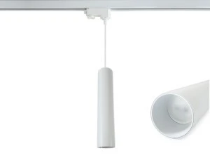 Smukła tuba (ø 6 × 30 cm) zawieszona na długim przewodzie prezentuje się lekko i nowocześnie. Biała obudowa z aluminium i akrylu doskonale pasuje do każdego wnętrza – od galerii po kuchnię w stylu loft.