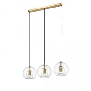 Lampa wisząca Arette 3 wykonana została z transparentnego szkła i metalu w złotym kolorze. Takie zestawinie barw jest niezwykle eleganckie, klasyczne i ponadczasowe. Lampa Arette wyróżnia się nietypową budową klosza. Klosz tej transparentnej lampy wiszącej ma kształt kuli, która posiada ozdobnie żłobione miejsce na żarówkę o standardowym gwincie E27. Złote dodatki wykonane z metalu nadają lampie Arette luksusowego wyglądu. Takie zestawienie barw, kształów i materiałów sprawia, że ta złota lampa wisząca będzie idealną propozycją do nowoczesnych wnętrz. Sprawdzi się również w aranżacjach o nieco industrialnym charakterze.