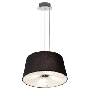 Lampa wisząca Bali w czarnym kolorze to ponadczasowy, klasyczny model lampy z odrobiną elegancji. Klosz lampy wykonany jest z czarnej tkaniny, podsufitke ze srebrnego metalu. Lampa posiada wejścia na cztery żarówki o typowym gwincie E27.