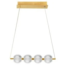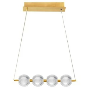 Lampa wisząca Brillant 4 to doskonała propozycja dla osób poszukujących eleganckich rozwiązań do wnętrz o charakterze glamour. Jej wyjątkowy wzór i kolorystyka doskonale harmonizują z atmosferą tego stylu aranżacyjnego. Jednakże, lampę tę można również z powodzeniem wykorzystać w aranżacjach klasycznych oraz pomieszczeniach utrzymanych w nowojorskim stylu. Konstrukcja lampy wiszącej Brillant została wykonana z metalu w złotym odcieniu, uzupełniona akrylowymi kloszami z prostym żłobieniem w formie kreseczek, co nadaje jej niepowtarzalny urok oraz elegancję. Transparentny kabel doskonale komponuje się z resztą elementów lampy, tworząc spójną całość. Niezwykle praktycznym rozwiązaniem jest zastosowanie wbudowanego źródła światła LED, umożliwiającego regulację barwy światła CCT. Przed montażem lampy użytkownik może wybrać preferowaną tonację światła spośród opcji: ciepłej, neutralnej lub zimnej. To sprawia, że każdy może dostosować oświetlenie do własnych upodobań i potrzeb.