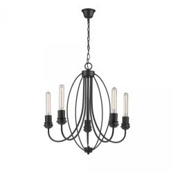 Canaria 5 wisząca - to propozycja oświetlenia dla tych, którzy szukają czegoś bardzo charakterystycznego i wyrazistego. Taka właśnie jest lampa wisząca Canaria. Jej konstrukcja stanowi czarny, metalowy stelaż w kształcie owalu, z którego rozpościera się pięć prętów, w kształcie litery” U” . Te fikuśne ramiona posiadają na górze źródła światła, o gwincie E27.