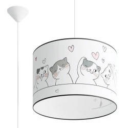 Lampa wisząca do pokoju dziecięcego CAT jest dostępna w 2 rozmiarach: z kloszem o średnicy 30 i 40 cm. Dzięki temu możesz lepiej dobrać ją do wielkości pomieszczenia. Nic nie stoi na przeszkodzie, by tworzyć kompozycje oświetleniowe z kilku lamp - ile pomysłów, tyle możliwości!