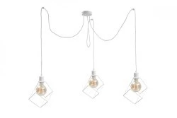 Poznaj lampę Ruben White - prawdziwy klejnot wśród loftowych dodatków oświetleniowych. Trzypunktowa konstrukcja typu pająk z białymi drutami w kształcie sześcianu to nie tylko źródło światła, ale również wyrazisty element dekoracyjny, który nada Twojemu wnętrzu niepowtarzalnego charakteru.