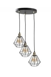 Zapraszamy do poznania lampy wiszącej Foskal Gold - połączenie nowoczesnego designu z subtelnym luksusem. Ta czarna lampa trzypunktowa ze złotymi elementami oraz czarnymi drutami w kształcie diamentu to kwintesencja elegancji i wyrafinowanego smaku.