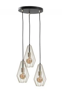 Przedstawiamy Geo Gold - lampa wisząca, która podkreśli wyjątkowy charakter Twojej przestrzeni. Ta czarna lampa trzypunktowa z trzema złotymi drutami w kształcie szpica to połączenie nowoczesnego designu z subtelnym akcentem luksusu.