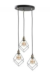 Lampa Ruben Gold wyposażona jest w trzy oprawki E27, co umożliwia korzystanie z żarówek o maksymalnej mocy 60W, zapewniając wystarczające oświetlenie w całym pomieszczeniu. Przewody w materiałowym oplocie dodają lampie industrialnego charakteru i stylu, jednocześnie nadając jej loftowego wyrazu.