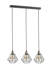 Zapraszamy do poznania lampy wiszącej Foskal Gold - połączenie nowoczesnego designu z subtelnym luksusem. Ta czarna lampa trzypunktowa ze złotymi elementami oraz czarnymi drutami w kształcie diamentu to kwintesencja elegancji i wyrafinowanego smaku.