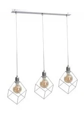 Srebrna konstrukcja lampy Ruben Silver z trzema drutami w kształcie sześcianu tworzy unikatową estetykę, która przyciąga uwagę i dodaje charakteru każdemu pomieszczeniu. Oprawki E27 pozwalają na korzystanie z żarówek o maksymalnej mocy 60W, zapewniając odpowiednie oświetlenie do codziennych czynności, jak i tworząc atmosferę, która pasuje do każdej okazji.