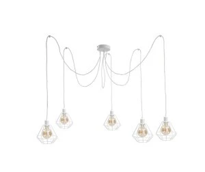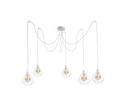 Wprowadź do swojego wnętrza nowoczesny styl i funkcjonalność z lampą wiszącą Foskal White. Ta biała lampa typu pająk, pięciopunktowa z białymi drutami w kształcie diamentu, to esencja elegancji i nowoczesnego designu.