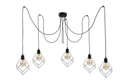 Dzięki przewodom w materiałowym oplocie oraz możliwości regulacji wysokości, możesz dostosować ją do swoich potrzeb i preferencji, tworząc unikalną aranżację świetlną. Czarne druty w kształcie sześcianu tworzą interesującą grę światła i cienia, dodając wnętrzu niezwykłej atmosfery.
