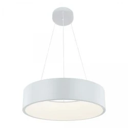 Biała lampa wisząca Malaga to centralne oświetlenie o nowoczesnym designie, który osiągnięto dzięki połączeniu akrylu i solidnego metalu w konstrukcji okrągłego klosza. Dzięki swojej ciekawej budowie, lampa ta jest idealna jako główne źródło światła w pomieszczeniu. Doskonale sprawdzi się zarówno w domowych wnętrzach, takich jak salon czy kuchnia, jak i w przestrzeniach komercyjnych, takich jak recepcje czy lobby. Biała lampa wisząca w stylu glamour z kolekcji Malaga emanuje elegancją i stylem, łącząc minimalistyczny wygląd z efektownym wykończeniem. Lampa Malaga to nowoczesne oświetlenie LED, które eliminuje potrzebę częstych wymian żarówek. Źródło światła LED o ciepłej barwie 3000K sprawia, że wnętrze staje się przytulne i doskonale współgra z różnorodnymi aranżacjami. Akrylowa powłoka klosza delikatnie rozprasza światło, tworząc przyjemny, domowy nastrój.
