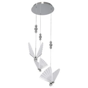 Lampa wisząca Mariposa to nie tylko źródło światła, ale również elegancki element dekoracyjny, który wzbogaci każde wnętrze, w którym się znajdzie. Ta wersja lampy, wykonana z akrylu i chromowanego metalu, łączy nowoczesność z wyrafinowanym stylem. Motyle skrzydła kryją w sobie zaawansowane oświetlenie LED, które dzięki technologii CCT (Correlated Color Temperature) umożliwia wybór barwy światła od ciepłej, przez neutralną, aż po zimną. Dzięki temu oświetlenie można idealnie dostosować do nastroju lub indywidualnych preferencji. Chromowane elementy dodają lampie nowoczesnego blasku, a staranność wykończenia detali świadczy o jej wysokiej jakości. Lampa Mariposa z pewnością zaspokoi oczekiwania nawet najbardziej wymagających użytkowników, łącząc funkcjonalność z estetyką.