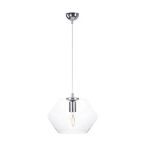 Lampa Eve Silver to harmonia elegancji i funkcjonalności. Jednopłomienny design, oparty na oprawce E27, umożliwia zastosowanie żarówek o maksymalnej mocy 60W, co pozwoli dostosować oświetlenie do swoich preferencji. Chromowana powłoka dodaje lampie nowoczesnej estetyki, a duży szklany klosz pozwala na swobodne rozpraszanie światła, tworząc jednocześnie klarowną i przestronną atmosferę.