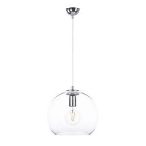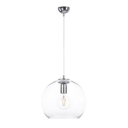 Zaprezentuj swoje wnętrza w nowoczesnym świetle dzięki lampie Noe Silver - jednopłomiennej perełce, która nie tylko oświetli Twoje pomieszczenie, ale także stanie się jego eleganckim akcentem. Chromowana konstrukcja lampy, z dużym szklanym transparentnym kloszem, emanuje nowoczesnym stylem, wprowadzając do każdego wnętrza subtelny blask.