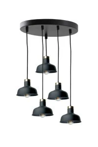 Przedstawiamy lampę Hebe Black - nowoczesny dodatek do każdego wnętrza, który łączy w sobie elegancję z funkcjonalnością. Ta pięciopunktowa lampa wisząca przynosi wyrafinowany akcent do każdego pomieszczenia, zachwycając czarnymi stalowymi kloszami i złotymi elementami.