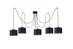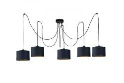 Flow Black to niezwykle efektowna lampa wisząca typu pająk, charakteryzująca się pięcioma eleganckimi abażurami na oprawkę E27 w intensywnej czerni. Osiągając długość 2 metrów, kable dodają tej lampie wyjątkowego wdzięku, pozwalając na elastyczne i kreatywne zawieszenie na różnych wysokościach lub w dużej rozpiętości, co sprawia, że jest to doskonała opcja do przestrzeni także o wysokim suficie.