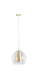 Złoty połyskliwy abażur wewnątrz szklanego klosza nadaje lampie Kula Gold niezwykłego uroku i elegancji. Złote detale podkreślają luksusowy charakter, tworząc harmonijną równowagę pomiędzy nowoczesnym designem a wyrafinowaną estetyką.