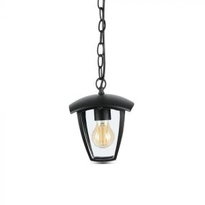 Lampa wisząca V-TAC VT-735 to stylowa oprawa ogrodowa typu latarenka, przystosowana do montażu na łańcuchu i kompatybilna z żarówkami E27.