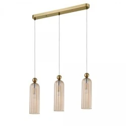 Lampa wisząca Piega to doskonały wybór dla tych, którzy pragną wprowadzić do swojego wnętrza eleganckie oświetlenie. Klosze lampy wykonane z wysokiej jakości szkła w bursztynowym kolorze subtelnie rozpraszają światło, tworząc przytulną atmosferę. Metalowa konstrukcja w kolorze złota dodaje jej luksusowego charakteru, sprawiając, że lampa staje się nie tylko źródłem oświetlenia, ale także efektownym elementem dekoracyjnym. Ta potrójna lampa wisząca idealnie sprawdzi się w różnych przestrzeniach Potrójna lampa wisząca w szczegółach Rodzaj lampy