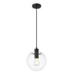 Puerto wisząca mała czarna - to kolejna propozycja lampy wiszącej. Ta jest najmniejsza, posiada jeden klosz w kształcie kuli, co daje jedno źródło światła. Kula jest wyprodukowana z transparentnego szkła, dzięki czemu światło będzie pięknie rozproszone. Całość na złotym stelażu i długim przewodzie. Długość przewodu sięga prawie półtora metra! Jednak niezależnie od tego, jaką wysokość ma pomieszczenie, lampa Puerto będzie odpowiednia, ponieważ jej przewód jest regulowany. Najbardziej efektywnie będzie wyglądała w modernistycznych oraz industrialnych wnętrzach. Transparentny kolor klosza, nadaje uniwersalności jeśli chodzi o kolorystykę wnętrz. Jej zastosowanie, będzie odpowiednie zarówno w salonie jak i kuchni, lecz ze względu na jej wymiary sprawdzi się także w łazience. Zapraszamy także do zapoznania się z innymi produktami z serii Puerto, aby jak najlepiej dopasować oświetlenie do własnych upodobań.