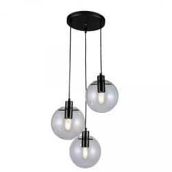 Puerto 3 wisząca czarna - to kolejna propozycja lampy wiszącej. Ta, posiada trzy klosze w kształcie kul, co daje trzy źródła światła. Kule są wyprodukowane z transparentnego szkła, dzięki czemu światło będzie pięknie rozproszone. Całość na czarnym stelażu i długich przewodach. Najdłuższy z przewodów sięga dwóch metrów! Jednak niezależnie od tego, jaką wysokość ma pomieszczenie, lampa Puerto będzie odpowiednia, ponieważ jej przewody są regulowane. Najbardziej efektywnie będzie wyglądała w modernistycznych oraz industrialnych wnętrzach. Transparentny kolor kloszy, nadaje uniwersalności jeśli chodzi o kolorystykę wnętrz. Jej zastosowanie, będzie odpowiednie zarówno w salonie jak i kuchni. Zapraszamy także do zapoznania się z innymi produktami z serii Puerto, aby jak najlepiej dopasować oświetlenie do własnych upodobań.