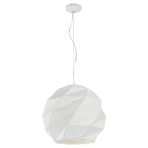 Biała lampa wisząca z kolekcji Reus została wykonana z metalu. Posiada ozdobny wzór przywodzący na myśl styl glamour. Klosz lampy posiada delikatne wycięcia, które w przyjemny sposób rozpraszają światło. Powierzchnia lampy została wykończona w eleganckim macie. Kształ i wykończenie tej białej lampy wiszącej, powodują, że będzie ona doskonałym wyborem do pomieszczeń urządzanych zarówno w stylu glamour, nowoczesnym, jak i klasycznym. Doskonałym uzupełnieniem lampy będą kinkiety, bądź spoty, które będą stanowiły dodatkowe źródło światła.