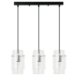 Potrójna lampa wisząca Savona 3 to wyjątkowy element wystroju zarówno salonu, jak i jadalni, gdzie może pełnić funkcję głównego źródła światła. Jej nowoczesny design doskonale komponuje się z różnorodnymi stylami wnętrz, dodając im elegancji i nowoczesności. Proporcje oraz estetyka lampy sprawiają, że Savona 3 doskonale sprawdza się jako dekoracyjny element nad stołem lub w centralnym punkcie pomieszczenia. Klosze lampy wykonane z podwójnego, transparentnego szkła delikatnie rozpraszają światło, co tworzy przyjemną atmosferę w pomieszczeniu. Czarna metalowa podsufitka nadaje lampie nowoczesnego wyglądu, podczas gdy srebrne elementy we wnętrzu kloszy dodają jej wyrafinowania i elegancji. Savona 3 została zaprojektowana na trzy żarówki z gwintem E27, co zapewnia odpowiednie oświetlenie w każdym pomieszczeniu. Dzięki swoim wymiarom i funkcjonalności, Savona 3 stanie się nie tylko praktycznym, ale także efektownym elementem wystroju twojego wnętrza.