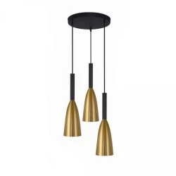 Złota lampa wisząca Solin - nowoczesność i luksus Lampa wisząca Solin to propozycja do nowoczesnych wnętrz, łącząca elegancję i funkcjonalność z nutą luksusu. Wykonana z metalu w złotym kolorze z dodatkiem czerni, lampa wyróżnia się wyrafinowanym wyglądem. Kluczowe cechy produktu Materiał i kolor Design Źródło światła
