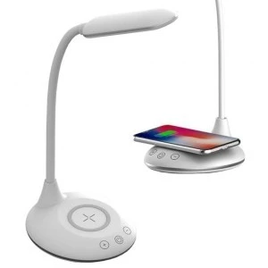 - Elegancka lampa stołowa z unikalną funkcją bezprzewodowego ładowania telefonów 5 W