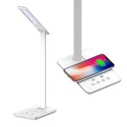 - Elegancka lampa stołowa z unikalną funkcją bezprzewodowego ładowania telefonów 5 W