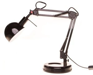 Lampka biurkowa, kolor czarny, zasilanie 220-240V~;50/60Hz, moc max 10W, źródło światła świetlówka kompaktowa, źródło ledowe lub tradycyjna żarówka, trzonek E14, regulacja we wszystkich płaszczyznach, IP 20.