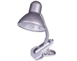 Lampka biurkowa, kolor srebrny, zasilanie 220-240V~;50/60Hz, moc max 10W, źródło światła żarówka/świetlówka kompaktowa/LED, trzonek E27, regulacja we wszystkich płaszczyznach, IP 20, wysięgnik giętki.
