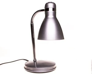 Lampka biurkowa, kolor srebrny, zasilanie 220-240V~;50/60Hz, moc max 10W, źródło światła żarówka/świetlówka kompaktowa/LED, trzonek E14, regulacja we wszystkich płaszczyznach, IP 20, wysięgnik giętki w górnej części.