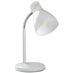 Lampka biurkowa, kolor biały, zasilanie 220-240V~; 50Hz, moc max 10W, trzonek E14, regulacja we wszystkich płaszczyznach, IP 20, wysięgnik giętki w górnej części.