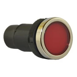 Lampki sygnalizacyjne Ø22 serii MD22P o budowie monoblokowej. Korpus z tworzywa sztucznego, metalowa nakrętka, klosz płaski, z przyłączami śrubowymi, świecące światłem ciągłym. Elementem świecącym jest uniwersalny moduł diodowy na napięcie 24-230V AC/DC.