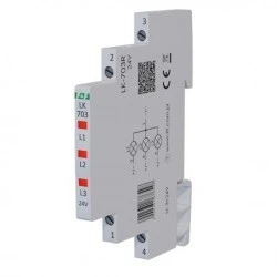 Lampka kontrolna LK-703G służy do optycznej sygnalizacji obecności napięcia w poszczególnych fazach sieci 3-fazowej.