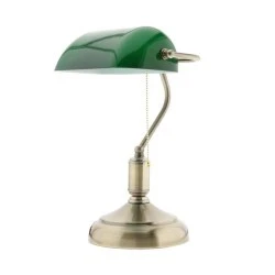 Lampa Abigali Bankierka to kultowy model wzorowany na projekcie H. McFaddina. Klasyczne oświetlenie posiada szklany, zielony klosz. Źródłem światła jest żarówka o gwincie E27. Mosiężna podstawa i staranne wykonanie sprawiają, że bankierka Abigali będzie ozdobą wnętrza. Designerska lampa stołowa sprawdzi się w gabinecie, na hotelowym stoliku czy w bibliotece. Włącznik na łańcuszku dodaje lampie charakteru i oddaje klimat retro.
