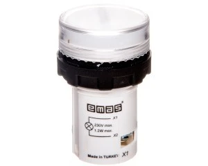 Lampka sygnalizacyjna MB z LED, monoblok, 230V AC, płaski klosz, biała.