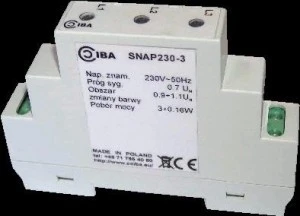 Sygnalizator Snap230-3 dostarcza informacji wizualnej o przekroczeniu minimalnej wartości napięcia przemiennego, 0.7UN, oraz o poziomie użytecznym napięcia, UN ±10% dla trzech faz. Do sygnalizacji wykorzystano diody LED, które w zakresie napięć 0.7÷0.9UN emitują światło o zielonej barwie a w zakresie napięć 0.9÷1.1UN płynnie zmieniają barwę światła od żółtej, przez pomarańczową do czerwonej Oczywiście, napięcia powyżej 1.1UN są nadal sygnalizowane barwą czerwoną. Poniższy rysunek ilustruje zmiany barwy diód elektroluminescencyjnych z napięciem.