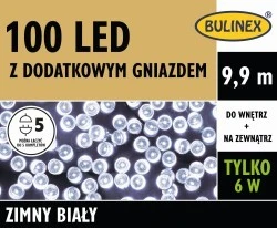 Lampki Bulinex 100led białe zimne 9 9m z dodatkowym gniazdem sznur