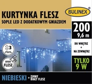 Lampki Bulinex 200led niebieskie 9,60m kurtyna sople flesz