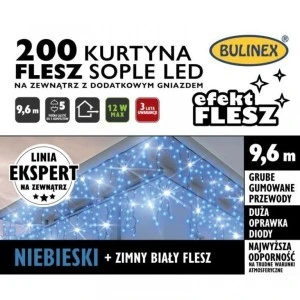 Lampki Bulinex kurtyna sople 200led nieb ieskie 9 6m biały flesz gruby przewód