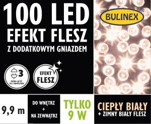 Lampki choinkowe Flesz LED 100l z gniazdkiem, biały ciepły 9,9m 230V/31V 9W IP44 na zewnątrz i do wnętrz 13‑138