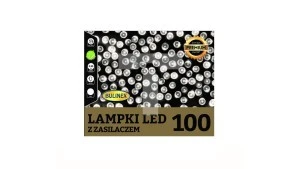 100 LED lampki z zasilaczem biały ciepły,przewód przeźroczysty 4,95m dł. + 3m przyłącza wewn/zewn 230V/31V 3,72W IP44 13-117