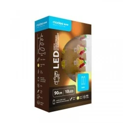 Produkt ma długość 90 cm i wyposażony jest w 10 diod LED. Żarówki w kształcie dzwonków rozmieszczone są co 10 cm. Dzięki dołączonym klipsom montaż staje się łatwiejszy i bardziej elegancki. Łańcuch zasilany jest kablem o długości 30 cm, podłączonym do pojemnika na baterie, który wymaga 2 baterii AA. Przy użyciu wysokiej jakości, trwałych baterii dekoracja może świecić do 3 dni ciągłego użytkowania.