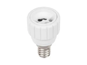 Przejściówka żarówki E14 > GU10 umożliwia zastosowanie żarówki z trzonem GU10 w oprawie przystosowanej do mocowania E14.
