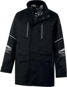 Materiał : Płótno 100% Poliester z recyklingu Membrana PU grafen | Kaptur odpinany z zamkiem błyskawicznym | Szwy : Uszczelniane | Liczba kieszeni : 4
